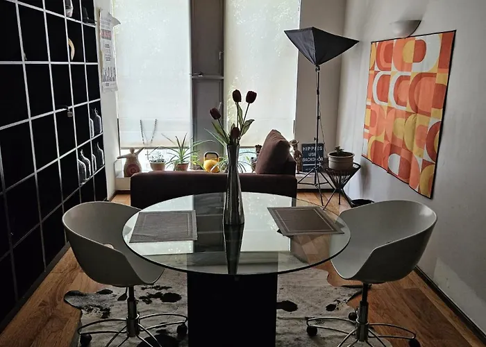 Urban Living Bnb Puerta Alameda Bed and Breakfast erbjuder rum med sitthörna och mathörna tillsammans med strykjärn med strykbräda och strykutrustning samt plattskärms-TV med satellitkanaler. Rummen är inredda med soffa och skrivbord. Dessutom har de te-/kaffebryggare. I det privata badrummet finns toalettartiklar. Du kan njuta av utsikten över staden.